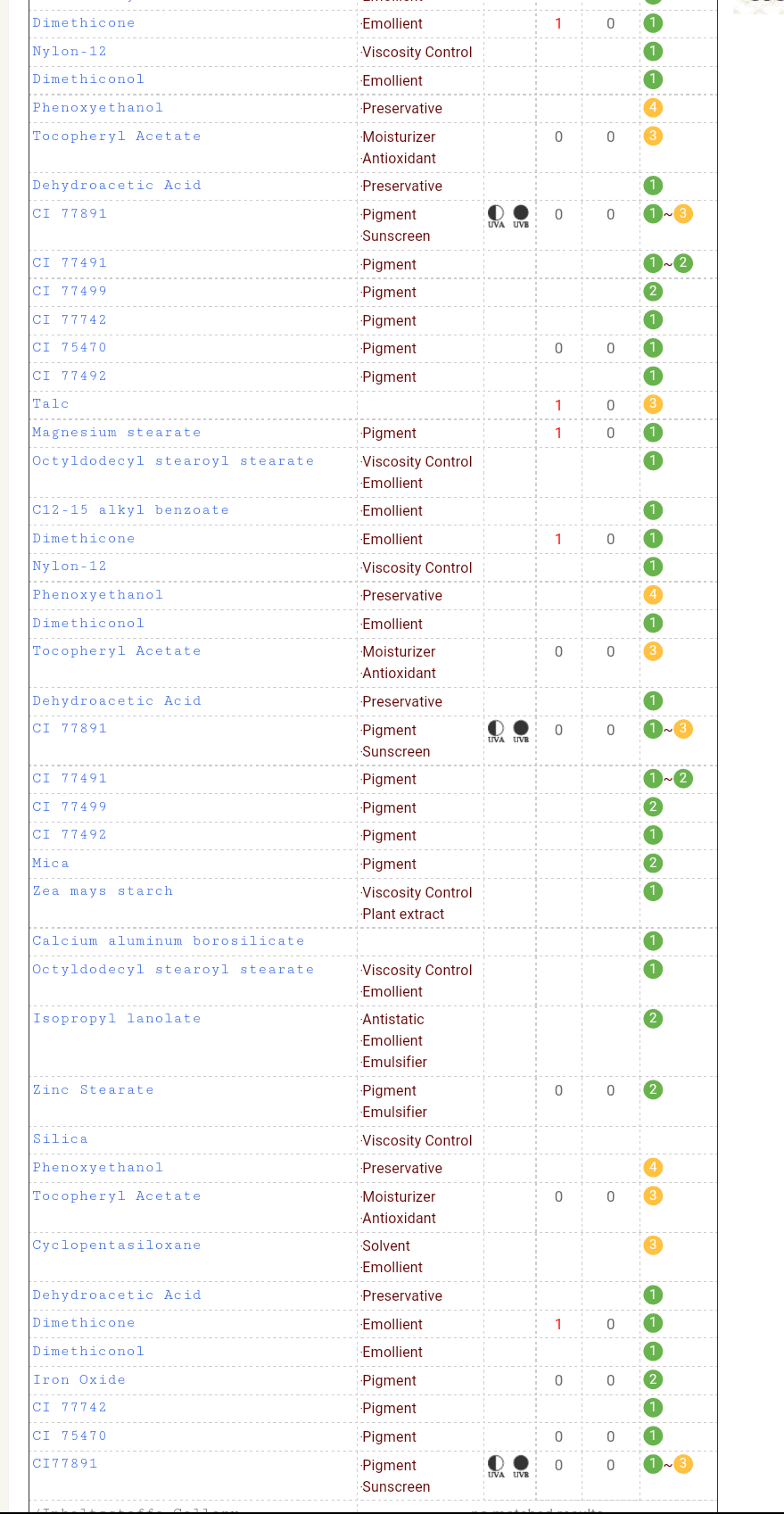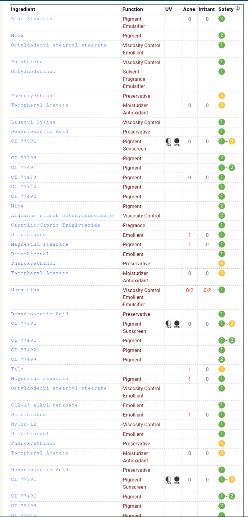 This is the COSDNA ingredients list scan :